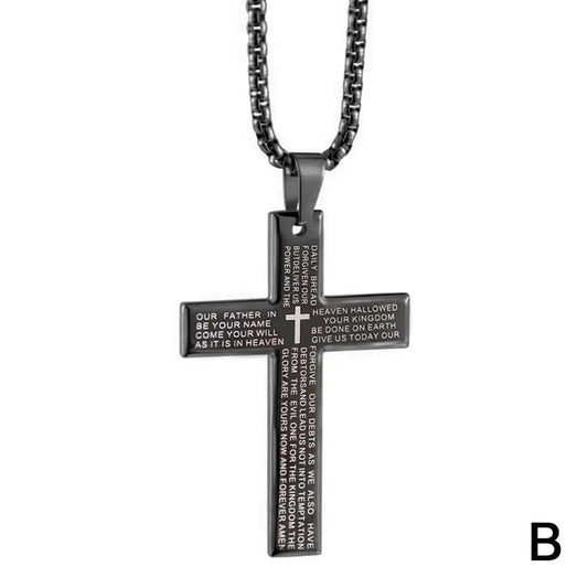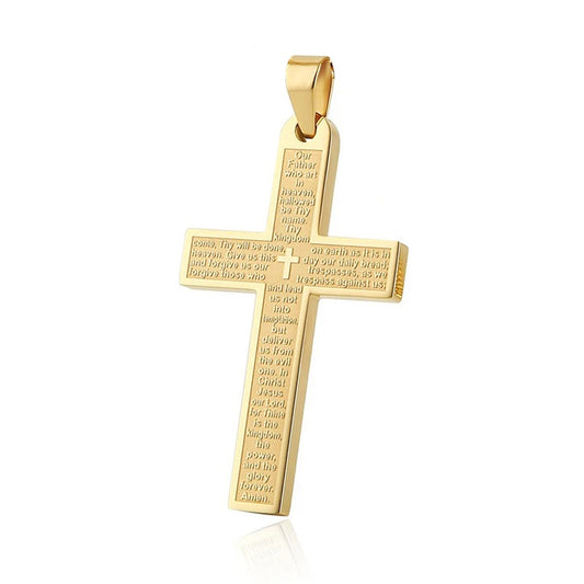 Elegant Cross Necklace with Lord's Prayer - Durable Stainless Steel Accessory